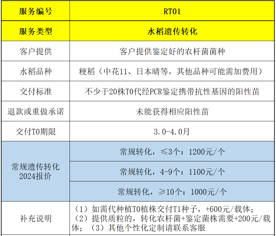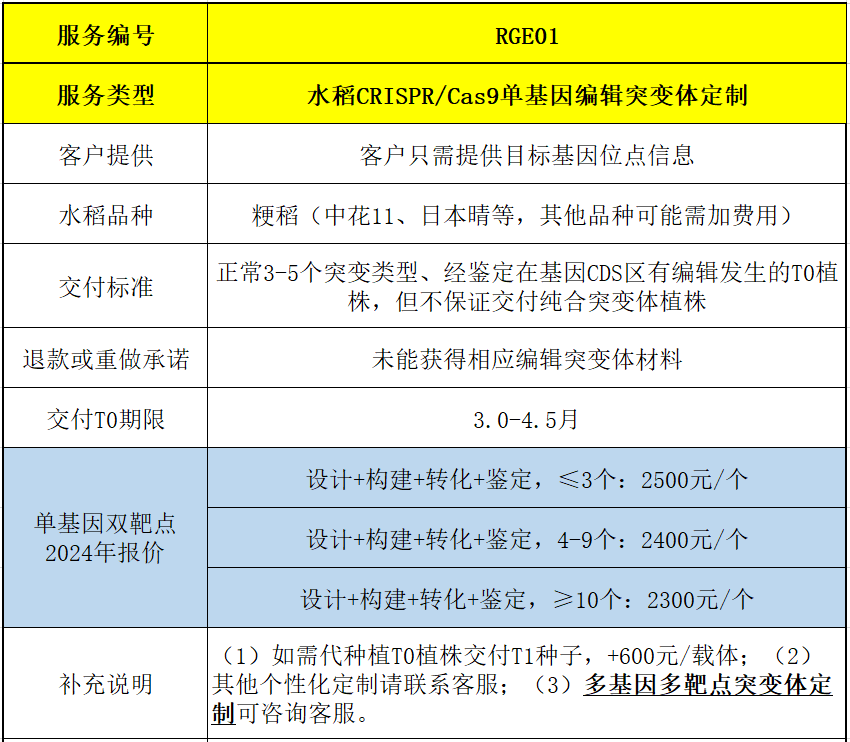 以市场低价为水稻科研人员提供遗传转化、基因编辑等技术服务。